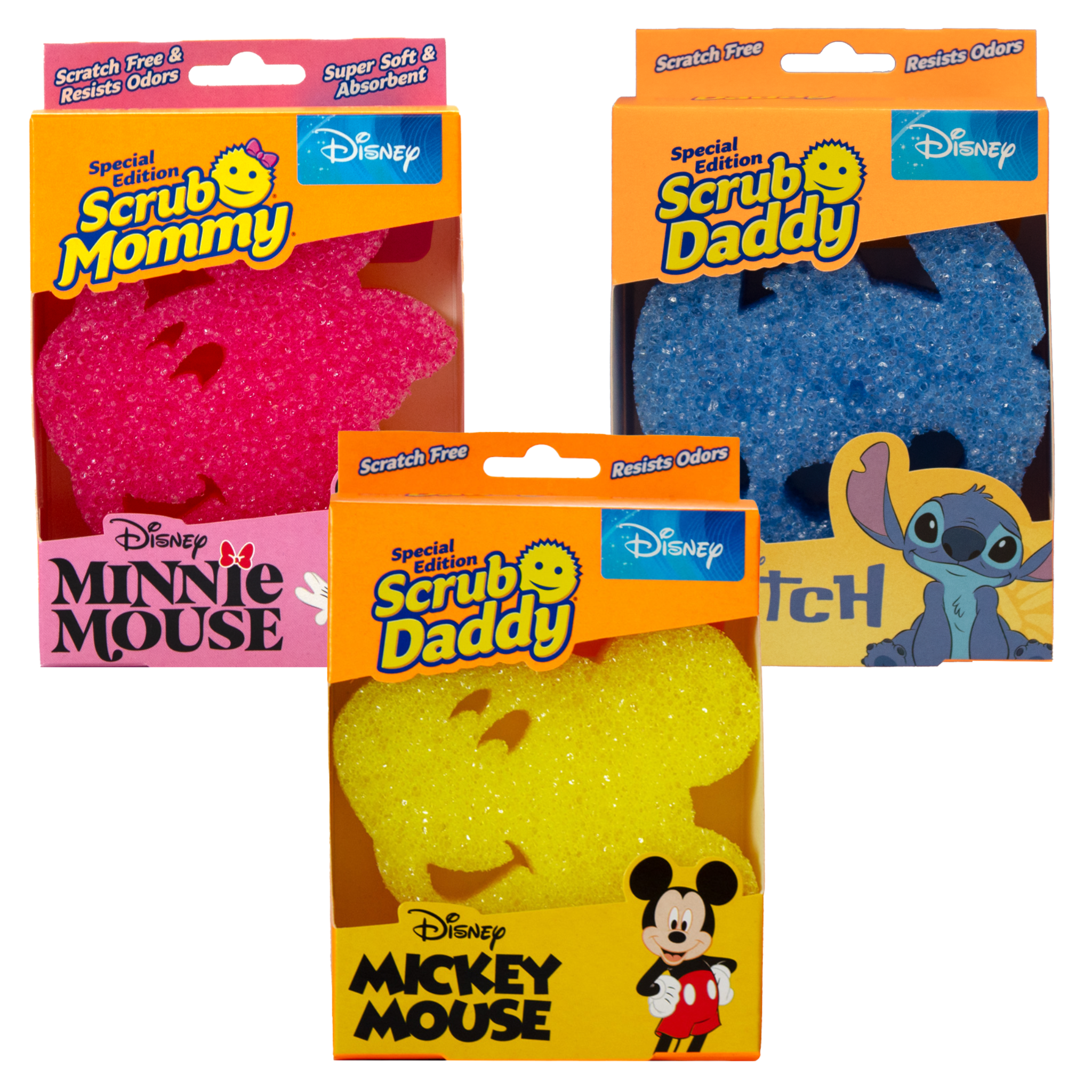 • Includes Mickey Mouse, Minnie Mouse and Stitch limited edition Scrub Daddy designs
